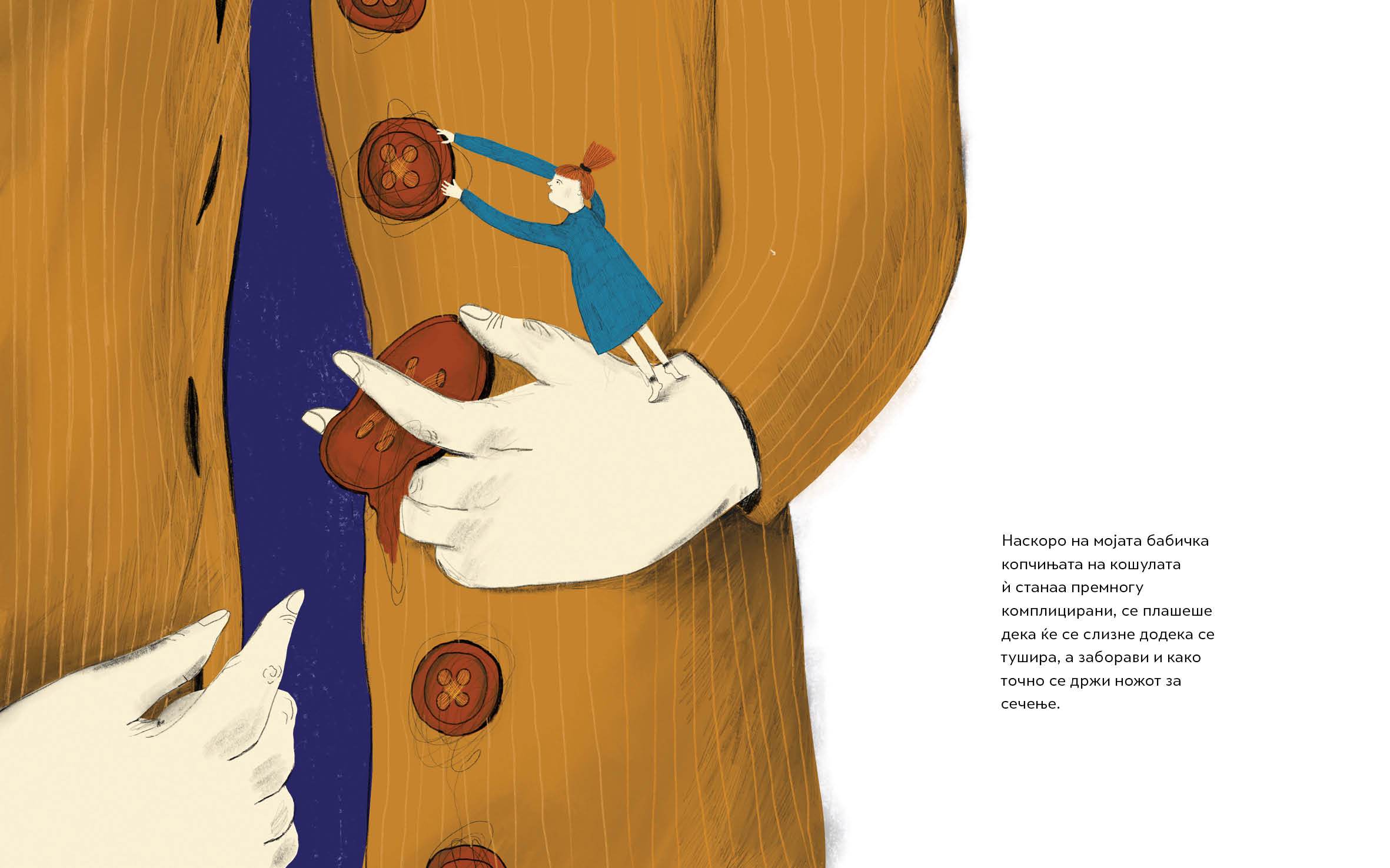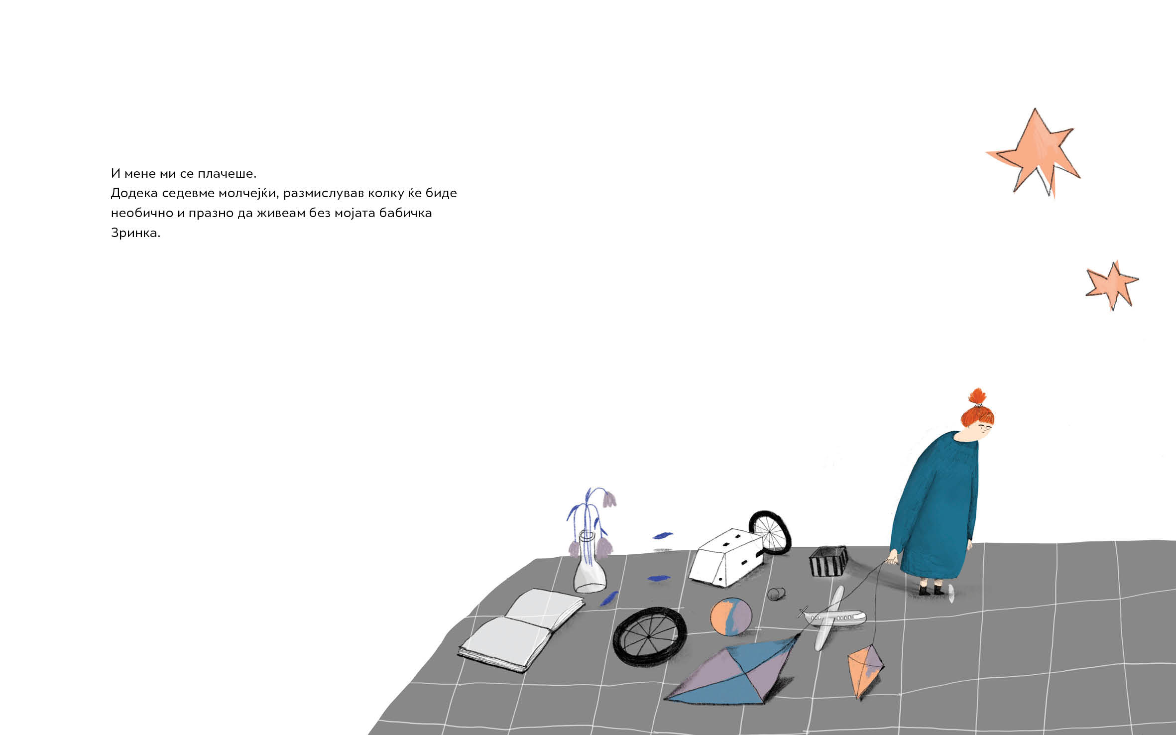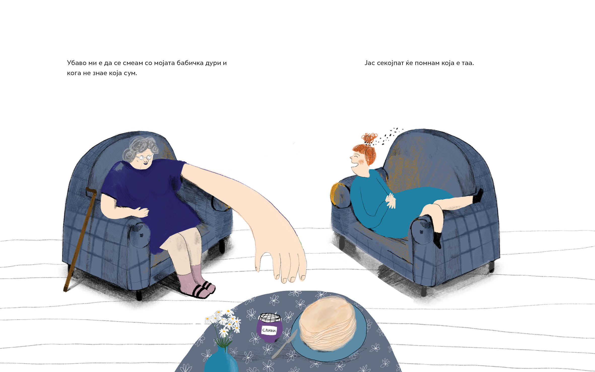 Неизбежно е да дојде денот кога ќе треба да се простиме од кучето, а ќе дојде и денот кога ќе треба да се простиме од баба и дедо. Моите родители се пред прагот на 80-та година и секој рационален човек треба постепено да го подготвува своето дете дека еден ден баба и дедо ќе заминат од овој свет. Му велам дека тоа ќе биде кога ќе наполнат сто годни. Не знам ни самата што зборувам кога е во прашање темата за смртта. Заштитувајќи ги децата во розов меур, всушност, ги лишуваме од потребната психолошка подготовка за реалниот живот. Но, неверојатно многу ми помогна приказната за бабичката која полека почнува да заборава, ја губи меморијата, а со тоа и разумот, и целиот нежен однос помеѓу внуката Ема и бабата Зринка.
