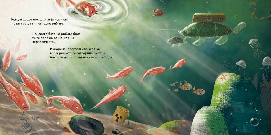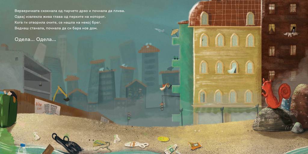 „Земјата некогаш била најубавата планета во Вселената, со широко, чисто, сино небо над неа, со бескрајно зеленило распослано по нејзината површина. Но, со време сè се сменило“… дотолку што денес воздухот што го дишеме ни е опасна закана. Живееме во токсична средина! Загадувањето е реален проблем и во нашиот град, сообраќајот е во хистерична турбуленција, океаните се полни со пластика, риби и китови умираат, животински видови исчезнуваат, деца се гушат, ама ние зборуваме за напредокот на технологијата, за недофатливоста на вештачката интелигенција, за привидна економска благосостојба, алчни за профит, ненаситни по дразби, спектакли, с(т)имулации и симулакруми… Знам, многу сум песимистички настрвена како за рецензија на книга за деца, но зарем ваквите четива не треба да ни бидат аларм за превоспитување на новите генерации? Kрик дека мораме да ги промениме животните навики, и вистински, а не само декларативно, да разбереме дека оваа планета е дом на многу живи суштества, дека човекот не е единственото битие, иако се става себе си во егоцентрична позиција. Како што вели и прочитот на Соња Исмаил: „За да изгради себеси дом, човекот ги уништува домовите и световите на другите живи суштества. Природата сѐ побргу исчезнува и бива заменета со бетон и пластика. Предизвиците на кои наидува храбрата верверичка во непоколебливата потрага по нејзиниот дом, ќе ги поттикне дечињата да размислуваат за нивниот однос кон природата и живиот свет, а ќе ја разбуди и нивната емпатичност“ (Соња Исмаил).