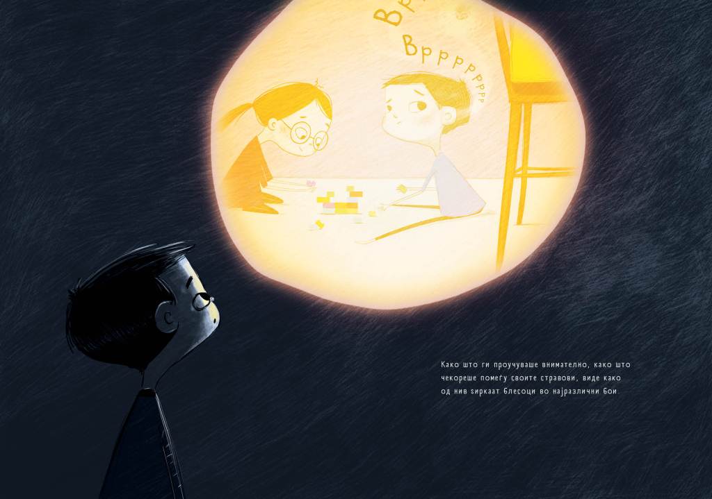 Важно е дека со оваа книга можете да стигнете до клучните прашања околу стравовите, дека тие чувства на нелагодност, на непријатност, на неубаво, се валидни. Визуелизацијата е чиста, шарена, примамлива за децата кога ќе им ја читате, што е заслуга на илустраторката. Преводот е едноставен и директно ве внесува во нарацијата, дело на Васко Марковски.