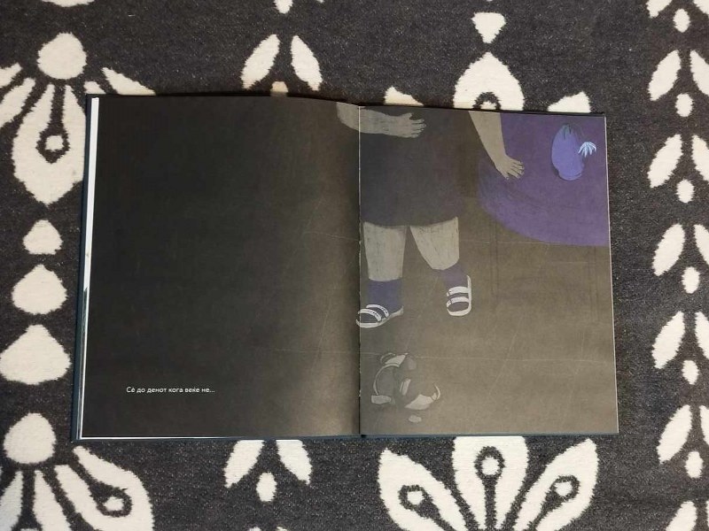 Уште на третото вртење на страниците во книгата, станува јасно дека ова не е приказна за авантурите на бабата и внуката, за нивните игри и уживањето во заеднички поминатото време. Со двете целосно темни страници на кои го гледаме долниот дел од телото на бабата, скршена шолја и овенато цвеќе влегуваме во новата реалност и за Ема и за баба Зринка, во којашто веќе ништо не е исто како порано и никогаш повеќе нема да биде.