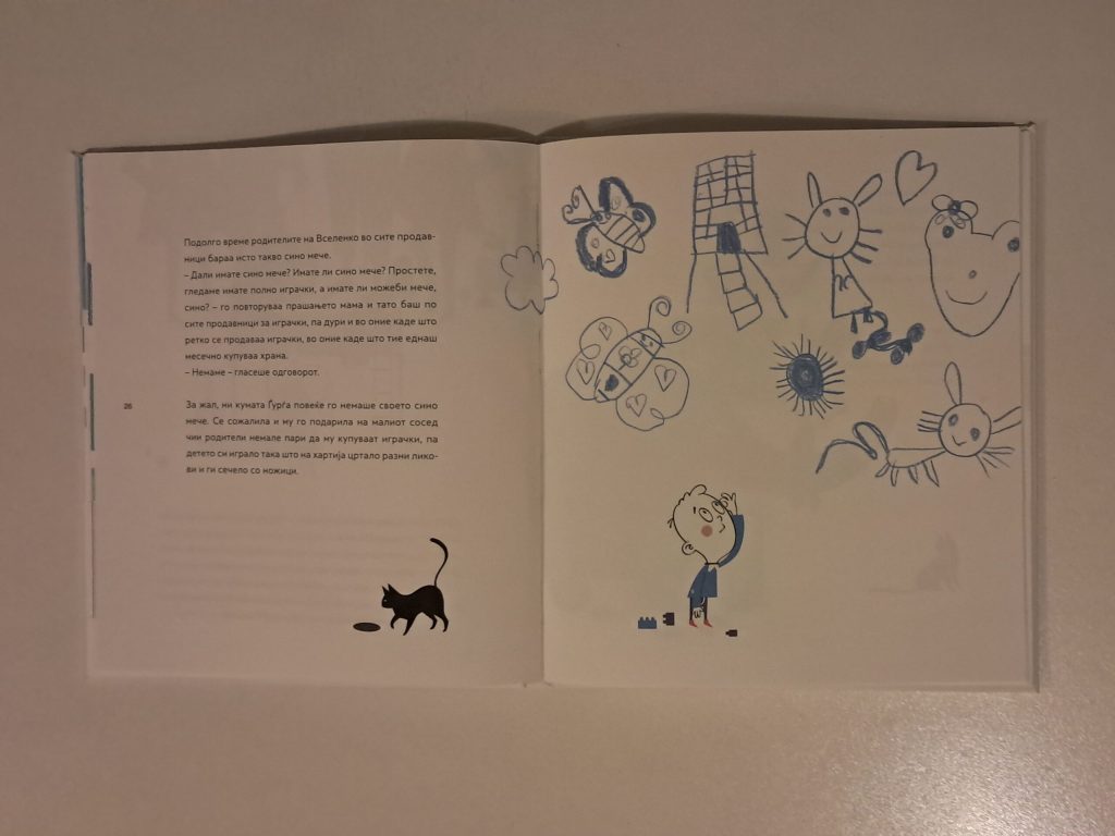 Затоа оваа сликовница ја гледам како едно убаво средство за размислување и разговарање – и сами со себе, и со нашите деца. Сите ние ги чуваме во себе сеќавањата за „сините мечиња“ од нашето детство, па можеби е време да ги ископаме од длабокото и да ги претвориме во приказни кои за децата ќе имаат забавен и поучен карактер, а за нас терапевтски. Па, мене ми текнува на неколку, ама баш ме интересира, кое е вашето сино мече?