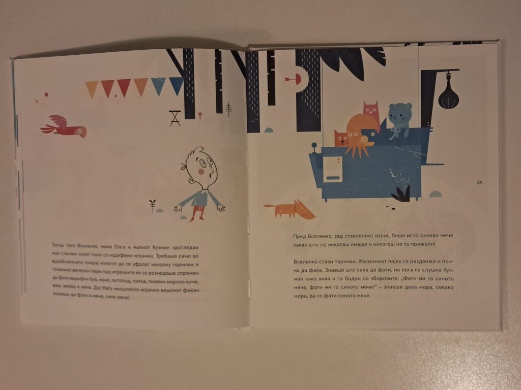 Ова е краток вовед во содржината на сликовницата „Фати ми го синото мече“ од хрватската писателка Силвија Шесто. Со оглед на тоа што живееме во време на преплавеност од секакви текстови, поткасти и рилови на тема трауми од детството и со совети за родителство кои ги даваат и стручни и самодекларирани експерти со самоувереност како да докторирале на темата, сметам дека е важно да упатам на оваа сликовница како на еден прекрасен и суптилен водич за разговор на родителот со своето дете, но што е уште поважно, на родителот со човекот и детето во себе, токму на тие теми.